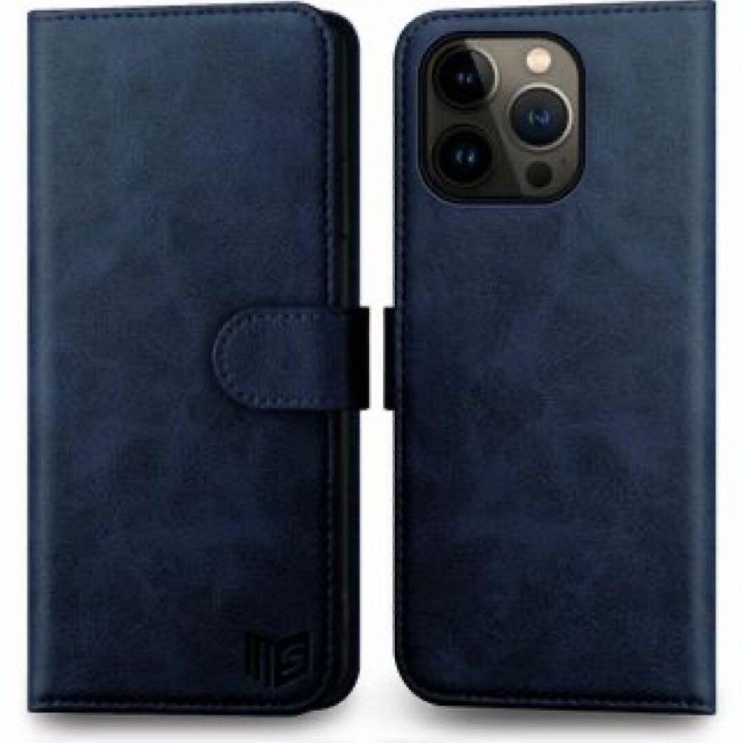 - iPhone 14 Pro Max 6.7インチ ケース 手帳型 ケース 本革 RFIDブロッキング カード収納 ブルー