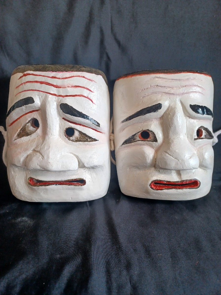 - No.15 コレクター放出品 松尾明神 神楽面 お歯黒 お面 魔除け 木彫り 木彫り面 能面 神楽 細密彫刻 木工芸 箱なし 和風インテリア