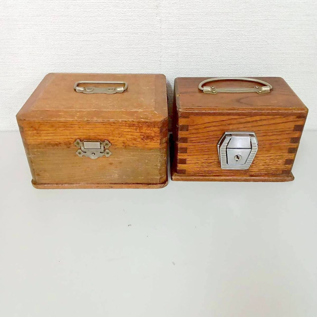 - 印箱 TONAKAI印 トナカイ 木製 印鑑ケース 2箱セット 木製 ハンコ ケース 箱 高級 古道具 小物入れ 鍵欠品 収納 ヴィンテージ / ガ924-11