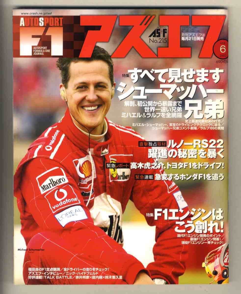 書名/記事: 02.6 アズ・エフ AS+F/すべて見せますシューマッハー兄弟、ルノーRS22躍進の秘密、高木虎之助 トヨタF1をドライブ、急変するホンダF1を追う、F1エンジンはこう創れ、、...
