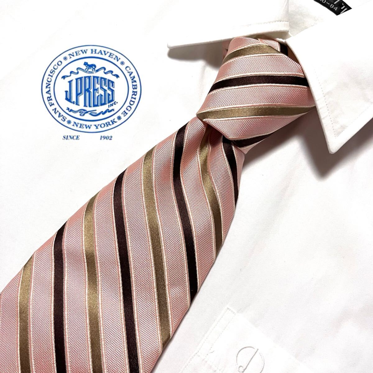 - J.PRESS ジェイプレス レジメンタル柄 ストライプ ネクタイ シルク 絹 ピンク ビジネス ブランドネクタイ メンズ オンワード樫山