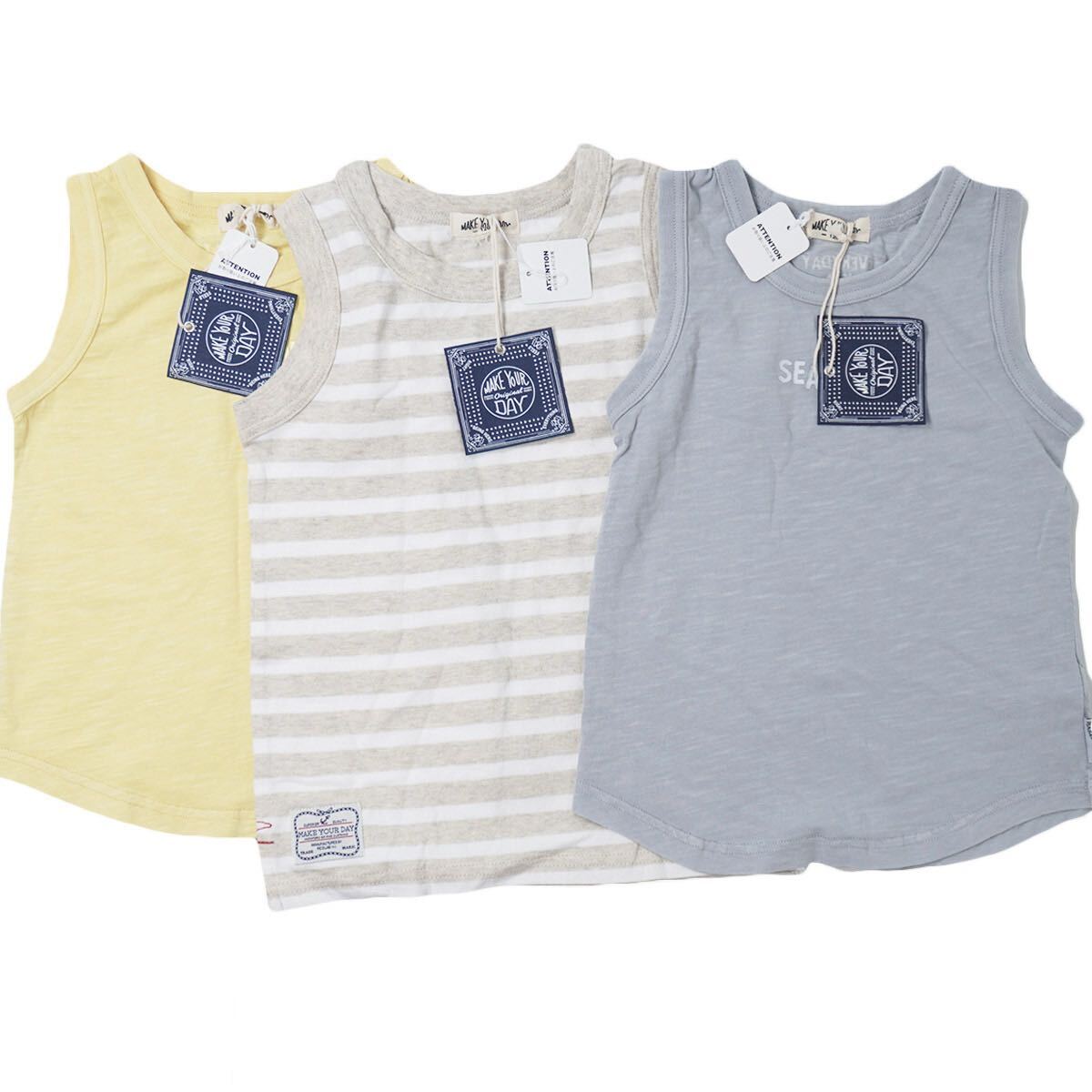 - 【3枚セット】MAKE YOUR DAY キッズ タンクトップ 110/120 イエロー グレー ボーダー 子供服 新品未使用