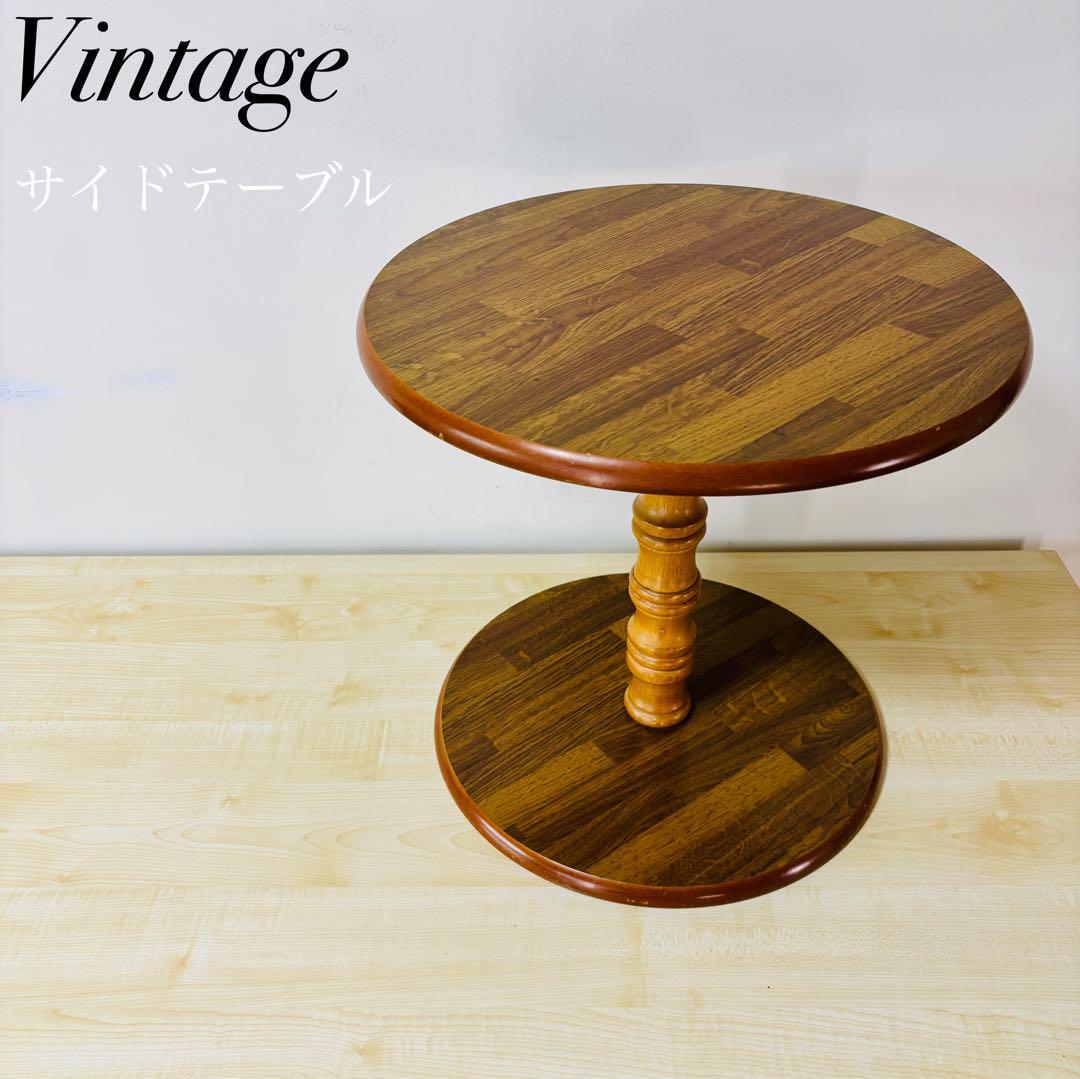 - ビンテージ サイドテーブル ナイトテーブル カフェ風テーブル 丸テーブル 送料込