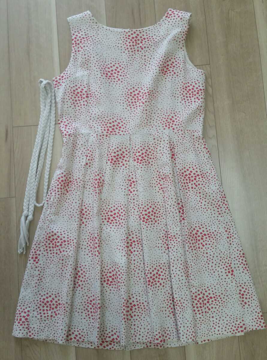 - サイズ02 CO-Ca 春夏用 ノースリーブワンピース フレアーワンピース プリーツスカート ベージュ×レッド 本体綿100%