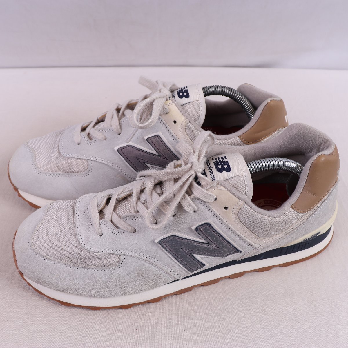 > 574 ニューバランス 27.0cm/new balance ライトグレー 紺 ネイビー ベージュ 中古 古着 メンズ スニーカー yy6927