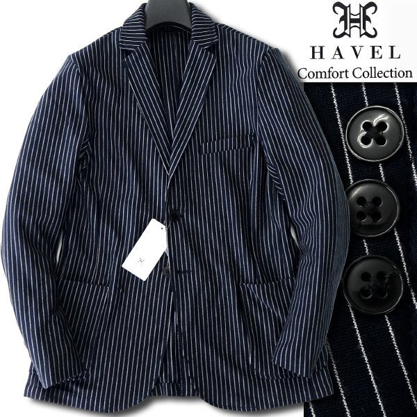 - 新品 HAVEL ハヴェル スウェット ジャージー ジャケット M 紺 【J50010】 春秋 メンズ ブレザー ウォッシャブル テーラード ビジカジ