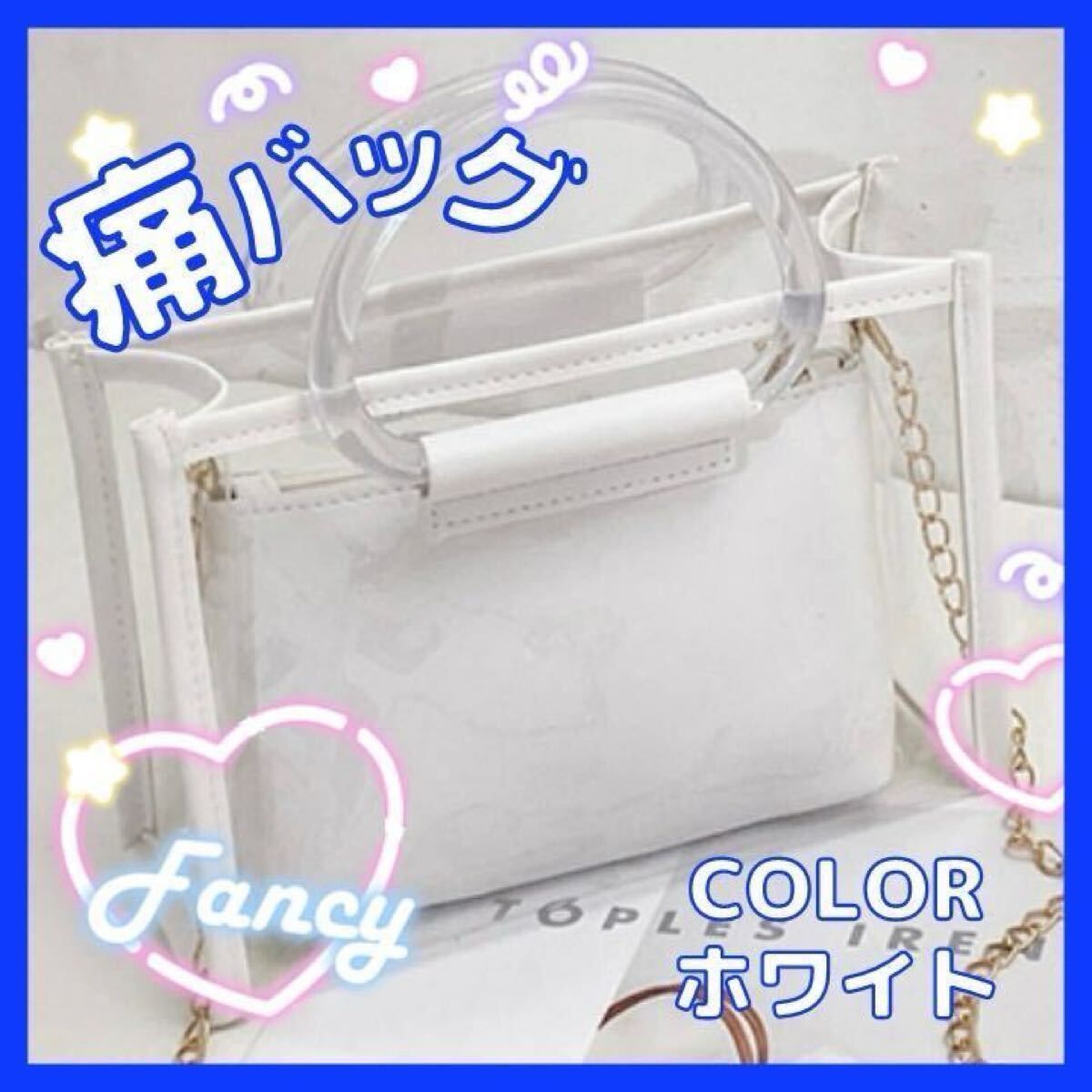 - 痛バ ショルダーバッグ 痛バッグ スケルトン 透明 ハンドバッグ クリアバッグ 白