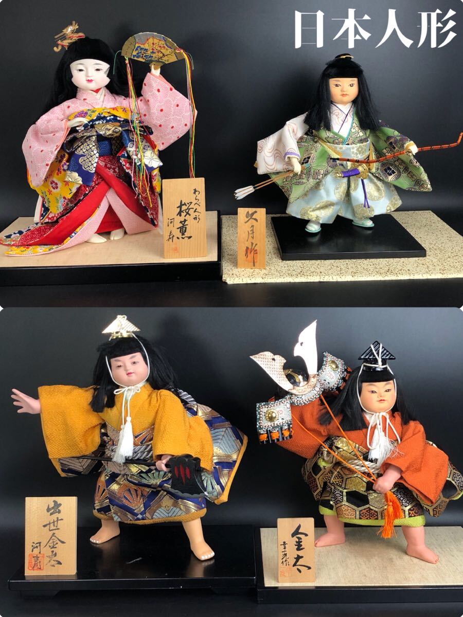 > ★日本人形 わらべ人形 武者人形 他 桜薫 河寿 久月作 金太 幸一光作 出世金太 コレクション 置物 現状品 4体 まとめ★553-3/flok★er1132