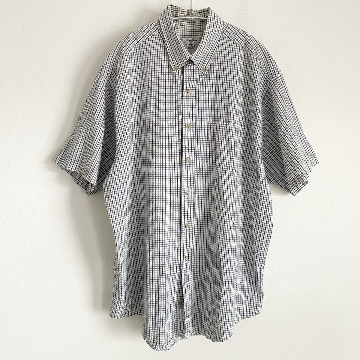 > 【ブルックスブラザーズ/日本製】チェック コットン 半袖シャツ/L表記/ネイビー×ホワイト/衝撃プライス!上質大人ベーシックスタイル★B42