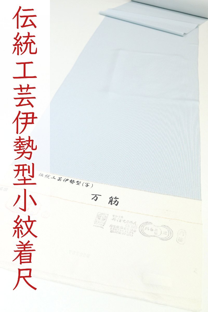 - 和遊館 即決kka2816 丹後ちりめん 伝統工芸伊勢型写 江戸小紋 着尺 万筋 ライトブルー色 お仕立て付き