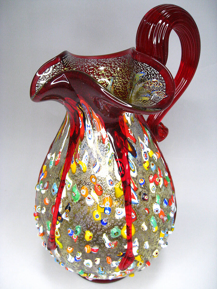 - #ムラノ #ミルフィオリ #レッド #取手付 #水差し #ピッチャー #花瓶 #MURANO #オブジェ #島 #ガラス #グラス #ベネチア #ヴェネツィア