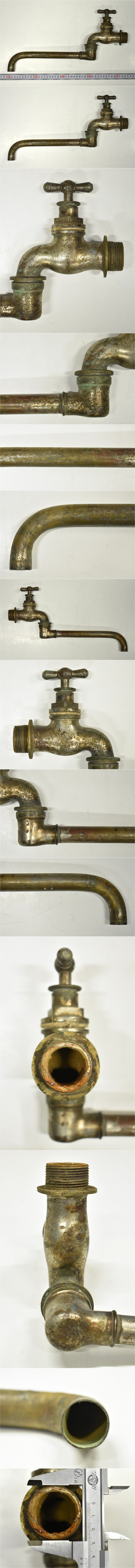 - 竜K352◆アンティーク 大型 水栓 蛇口 1点 全長43.5cm 約1495g ブロカント ビンテージ レトロ DIY 素材 材料 検:真鍮