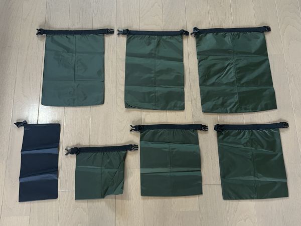 - 新品6083 超軽量薄手防水バッグ 6枚セット 収納袋付き オリーブグリーン