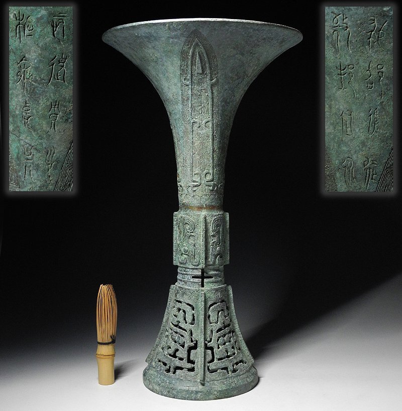 > 緑屋i■ 中国古玩 古銅 青銅器 尊 壺 饕餮紋 高約38.5cm 金文銘文 唐物 時代物 i9/0925-4/15-2#120