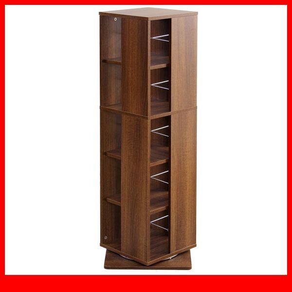 - 本棚★回転ブックラック 5段/コンパクト 省スペース 39x39cm/大容量 収納 本 200冊 DVD 200枚 CD 280枚/木目調 ウォールナット/特価/a3