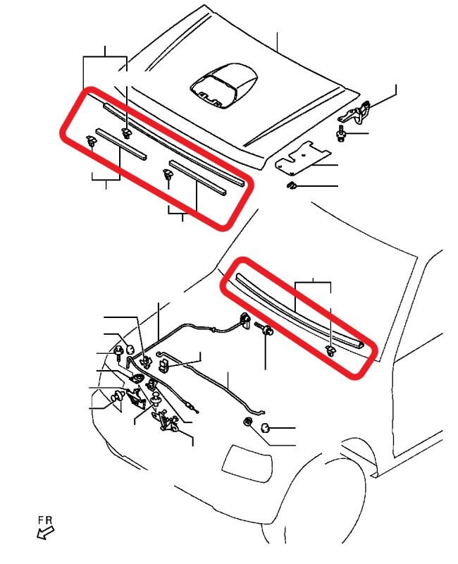 - 新品未使用 純正 三菱 ミツビシ パジェロミニ H53 H58 ターボ 1998-2012 ボンネット フード ウェザーストリップ セット モール B0738-1
