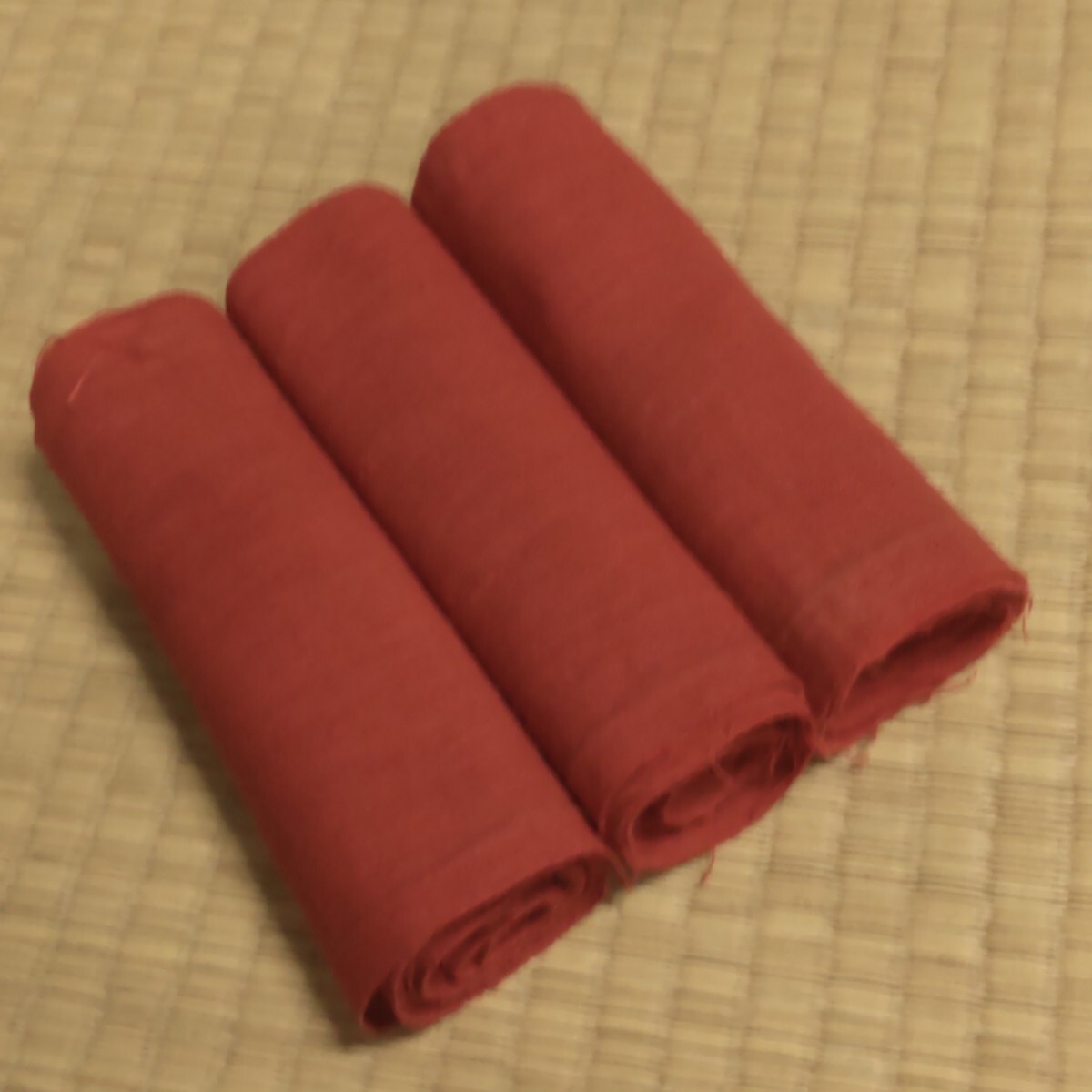 - 【時代布】古布 木綿 紅花 赤 半巾 3枚 合計約450cm 生地 古裂 アンティーク リメイク素材 A-2415