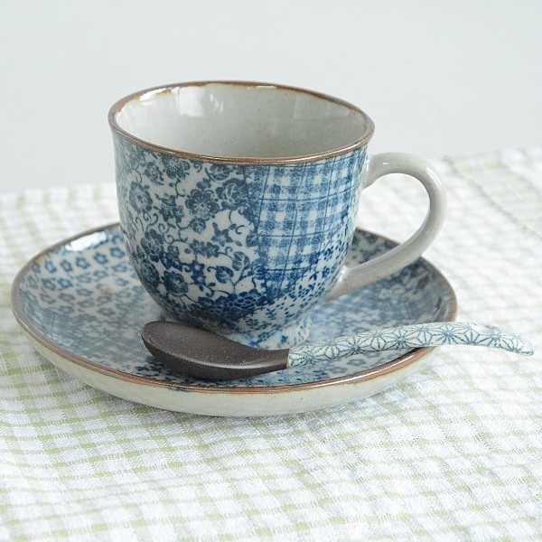 - カップ&ソーサー1客/パッチワーク/森川窯/美濃焼 cs075