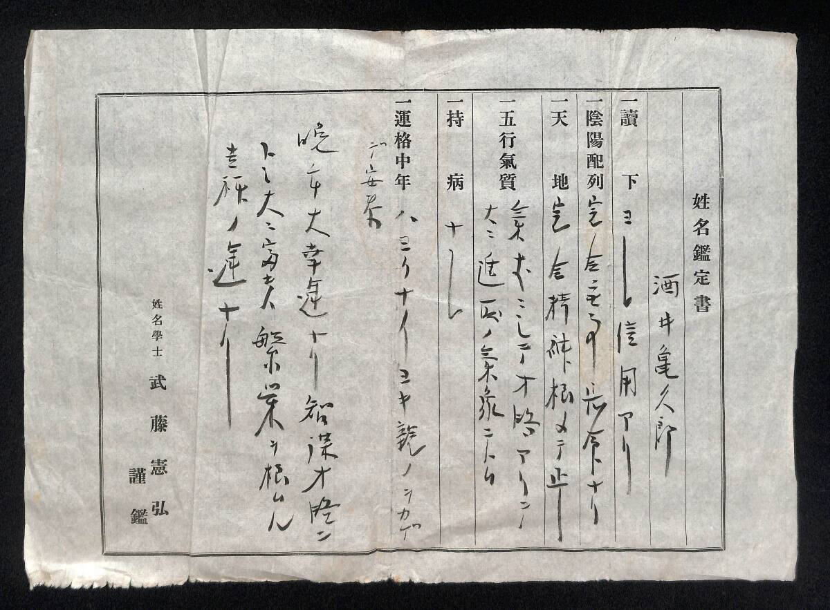 - 姓名鑑定書2枚 姓名学士・武藤憲弘 長野県松本市・開智学校/古文書【25-0701-131】
