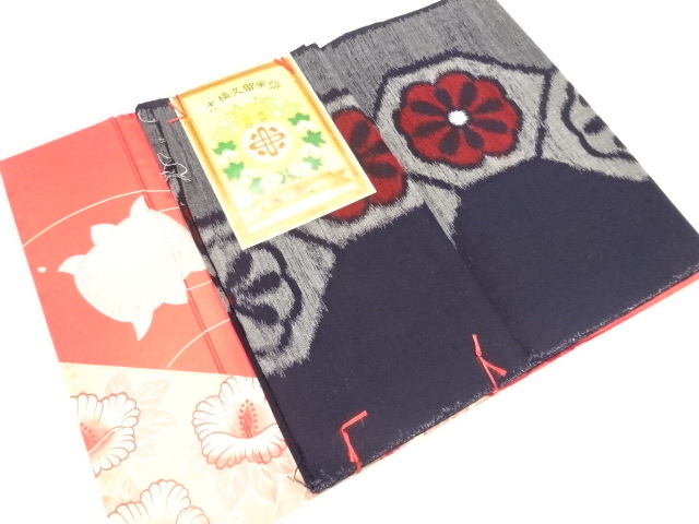 - 木綿 本場久留米絣 花亀甲模様 着尺反物 (IBE3K-006)
