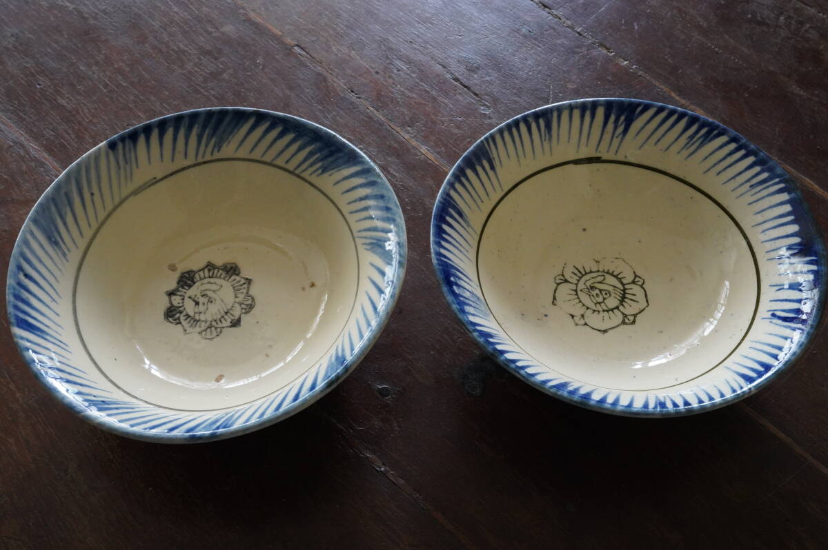 > ベトナム 器 セット 2枚セット ヴィンテージ ソンベ焼 茶碗 プレート 皿 フランス 陶器 手描き 染付け 民藝 小皿 深皿 ニワトリ 鶏