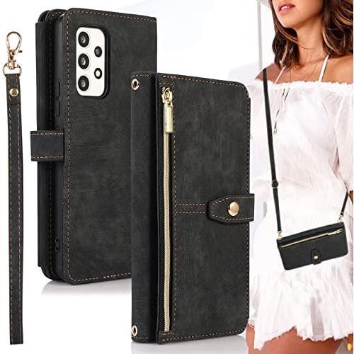 - レトロ ブラック Galaxy A53 5G ケース 手帳型 ショルダー ストラップケース 【 ストラップ 二本同梱】 A53 5g galaxy ケース SC-53C ケー