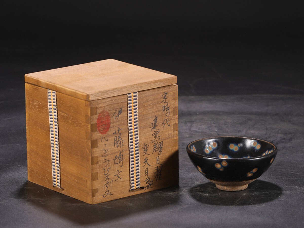 - 「宋 建窯 陶磁器 耀目曜変 天目盞」染付 置物 擺件 古賞物 中国古美術 旧蔵出