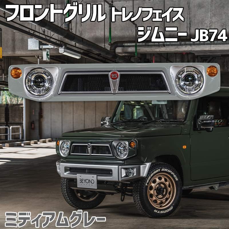 - フロントグリル ジムニー JB74 BEYOND ミディアムグレー 塗装済 CODE09塗り トレノフェイスグリル レッドエンブレム