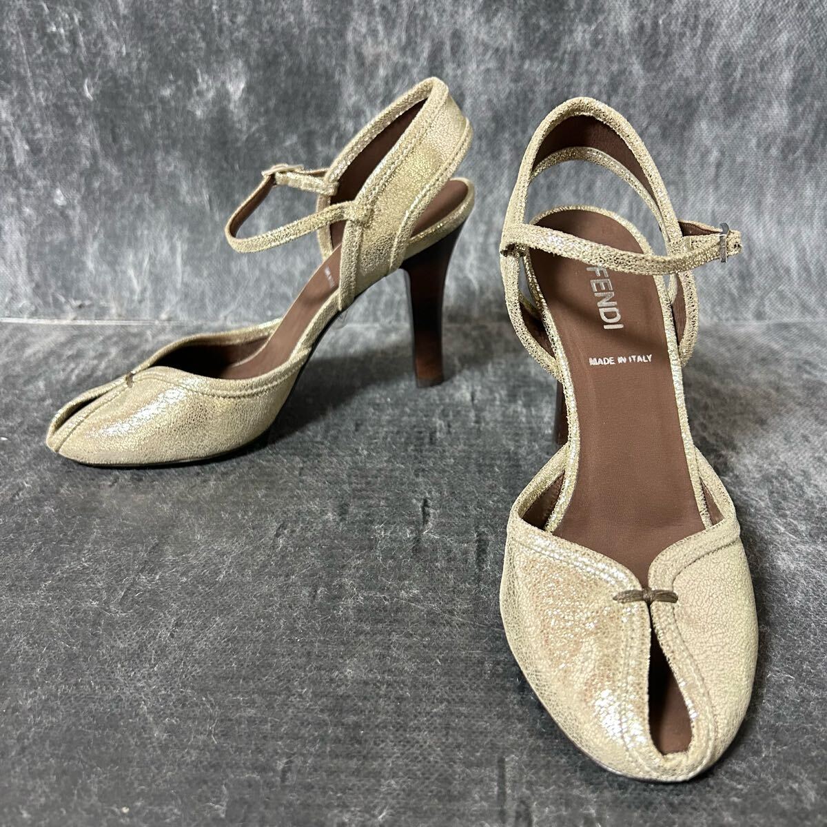 - 【新古品】FENDI フェンディ ストラップパンプス ヒールパンプス ラメ 341/2 21.5cm相当 ゴールド系 *ER