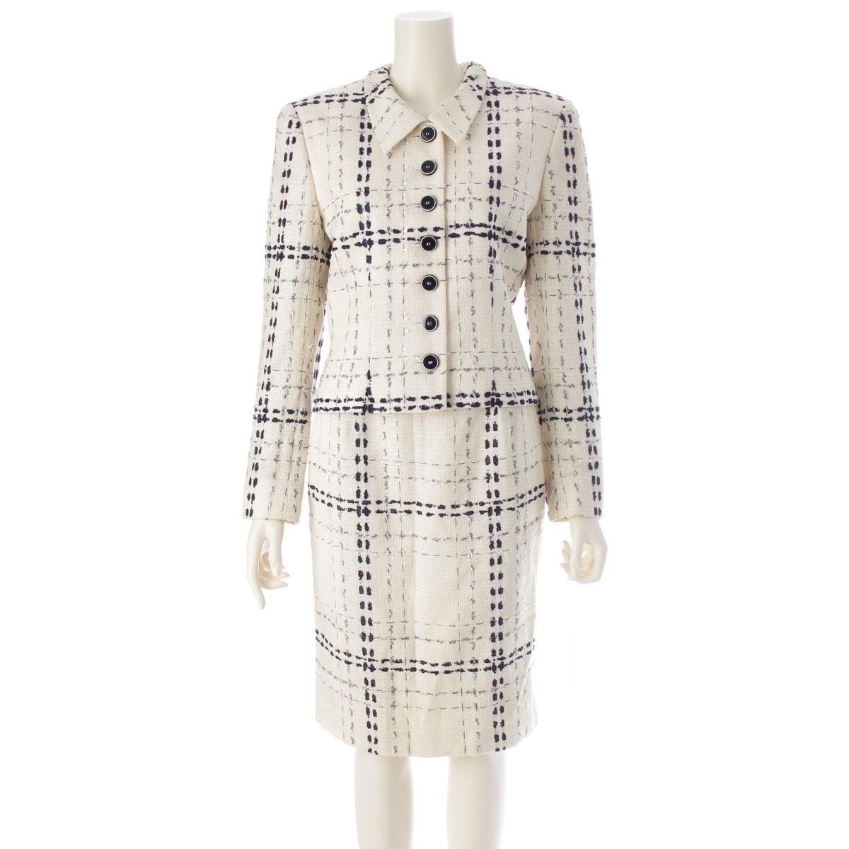 > ヴァレンティノ ツイード コットン レーヨン ウール miss v スカートセットアップ 73268 ホワイト ブラック 40/6【中古】