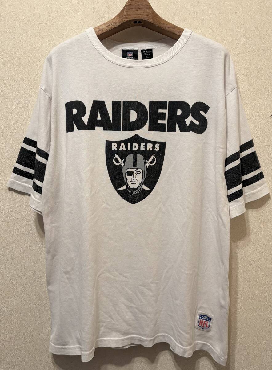 - コラボ00sオールドRAIDERS+AVIREXフットボールTシャツXLヘビーウェイト白コットン黒バック3段プリントNFLオフィシャルWネームy2kビンテージ