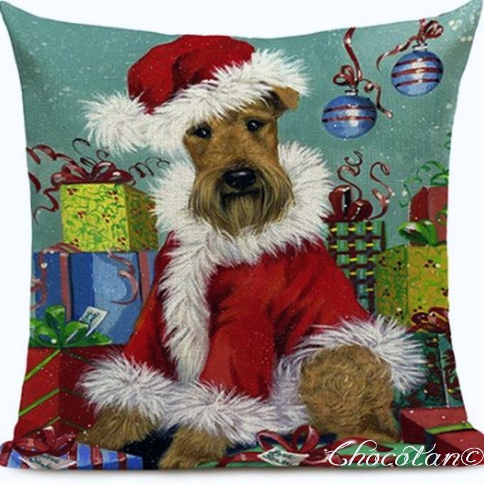 - 【送料無料】エアデールテリア G Xmas クッションカバー【新品】