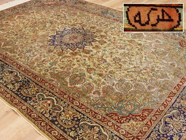 > 魁◆希少 最高級トルコ絨毯 HEREKE ヘレケ 工房マーク有 上質シルク100% 細密手織110万ノット 大判 210×310㎝ ヴィンテージ