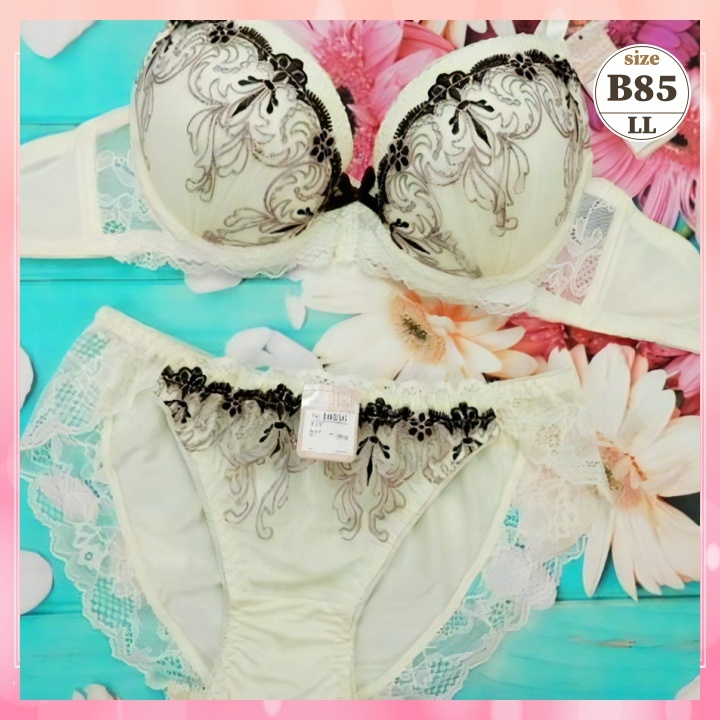 > Zb8507◆新品 ブラショーツセット【B85/LL】下着 ランジェリー 丸胸 ガーリーシャンデリア クリーム×茶