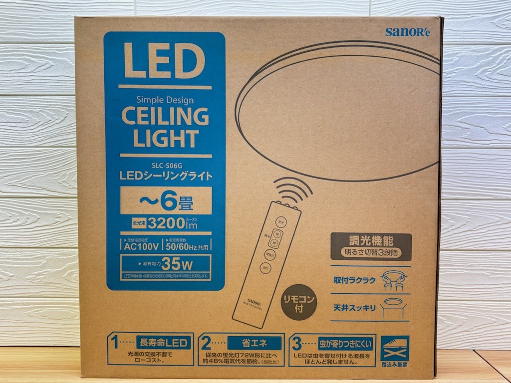 - A755 新品 6畳用 簡単取付 リモコン付き LEDシーリングライト 3200lm 昼白色 調光機能 明るさ3段階切替 おやすみタイマー SLC-S06G