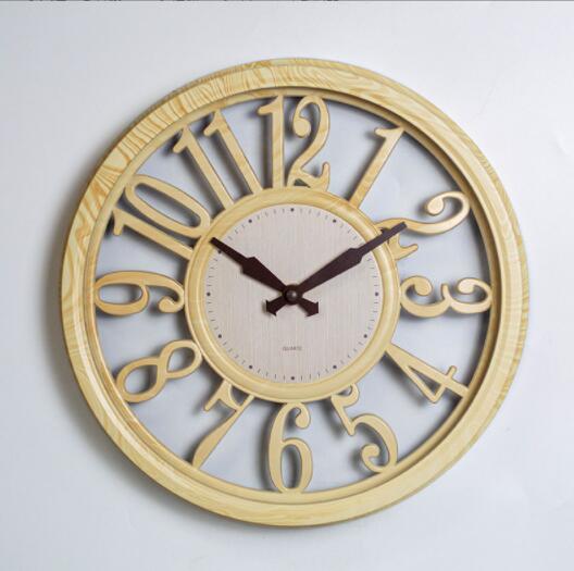 - 人気壁掛け時計おしゃれ木目調北欧掛け時計ウォールクロック直径30cm静音非電波お洒落 装飾 リビング インテリア 飾り 引越し祝いイエロー