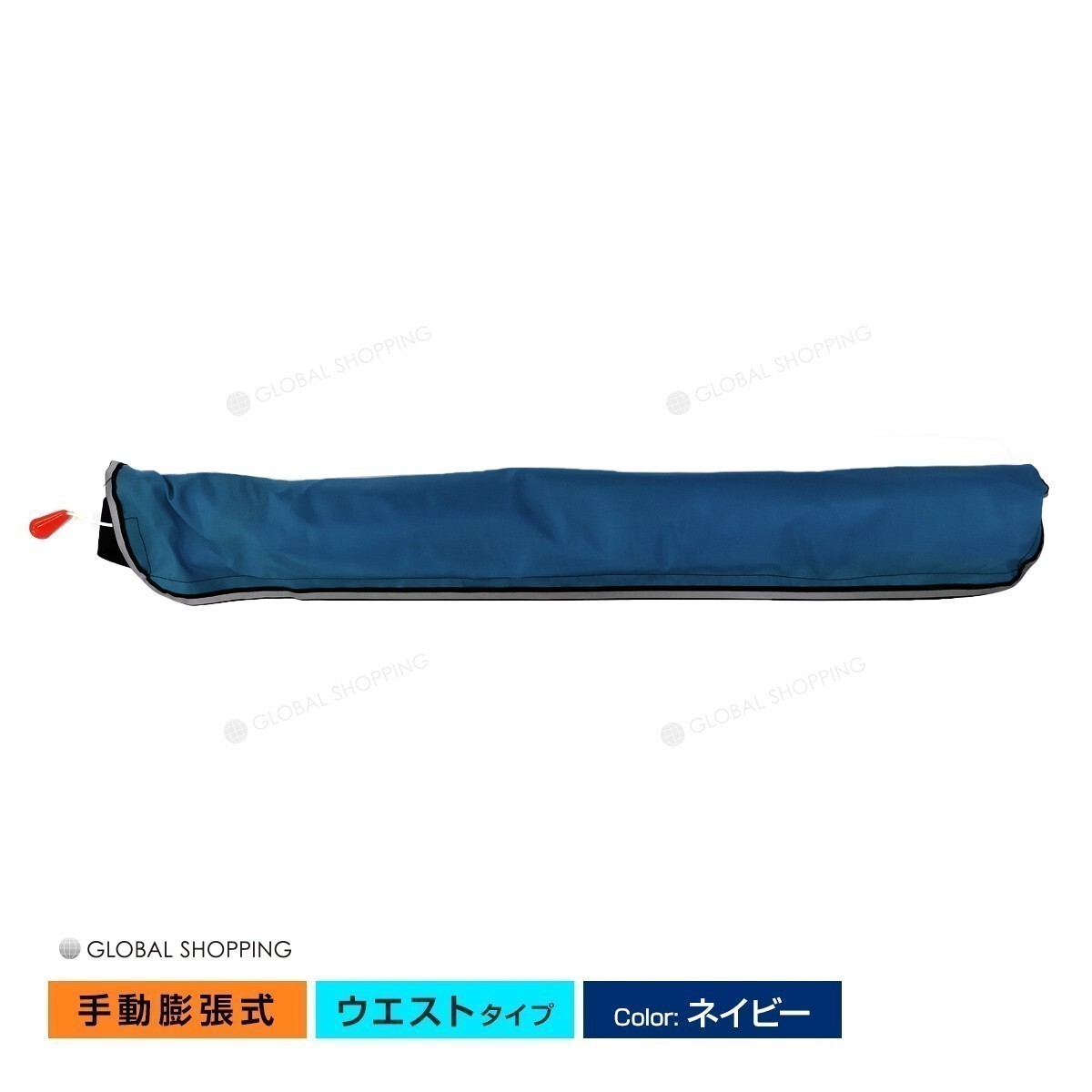 > ライフジャケット 手動膨張式 腰タイプ 腰 ウエスト ベルト型 ベルト ネイビー 濃紺 海 川 ボート カヤック 釣り 救命胴衣 男女兼用 大人用