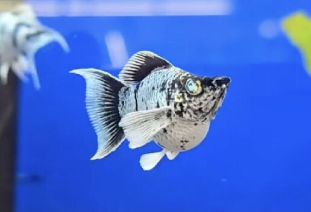 > 【アクアリウムのある暮らし】 ブルーアイプラチナホワイトゼブラバルーンライヤーモーリー 1匹 サンプル画像 淡水魚 熱帯魚 雌雄選別不可