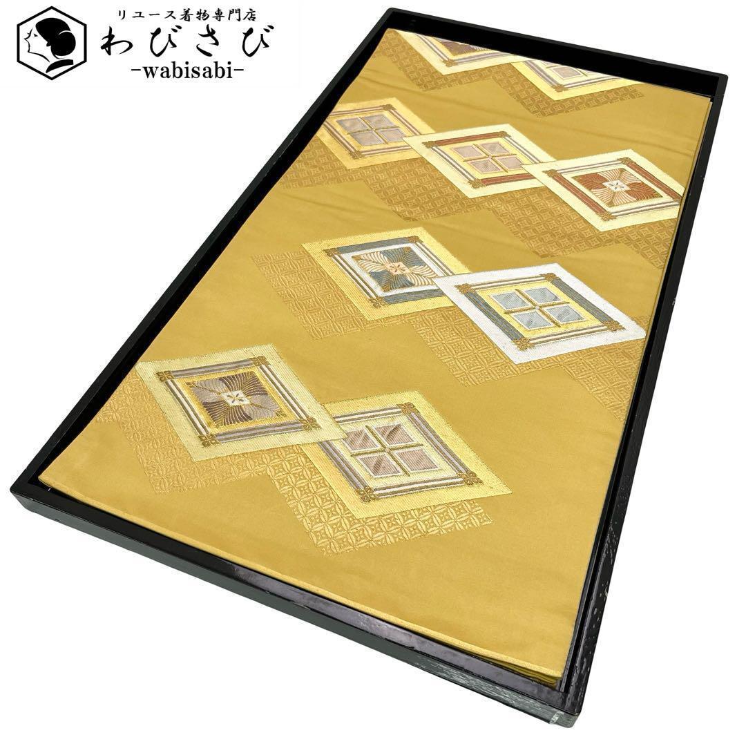 - 袋帯 菱形模様 七宝 金銀糸 濃卵色 フォーマル O-4530 着物 きもの kimono 和服 和装 中古 リサイクル着物 【送料無料】