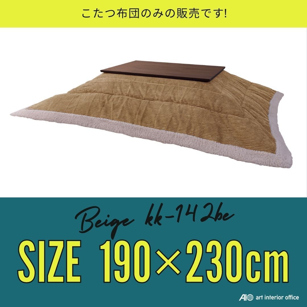 - こたつ布団 長方形 ベージュ 190×230センチ シープボア こたつ用品 薄掛け コタツ布団 ※天板サイズ120×80対応 おしゃれ KK-142BE