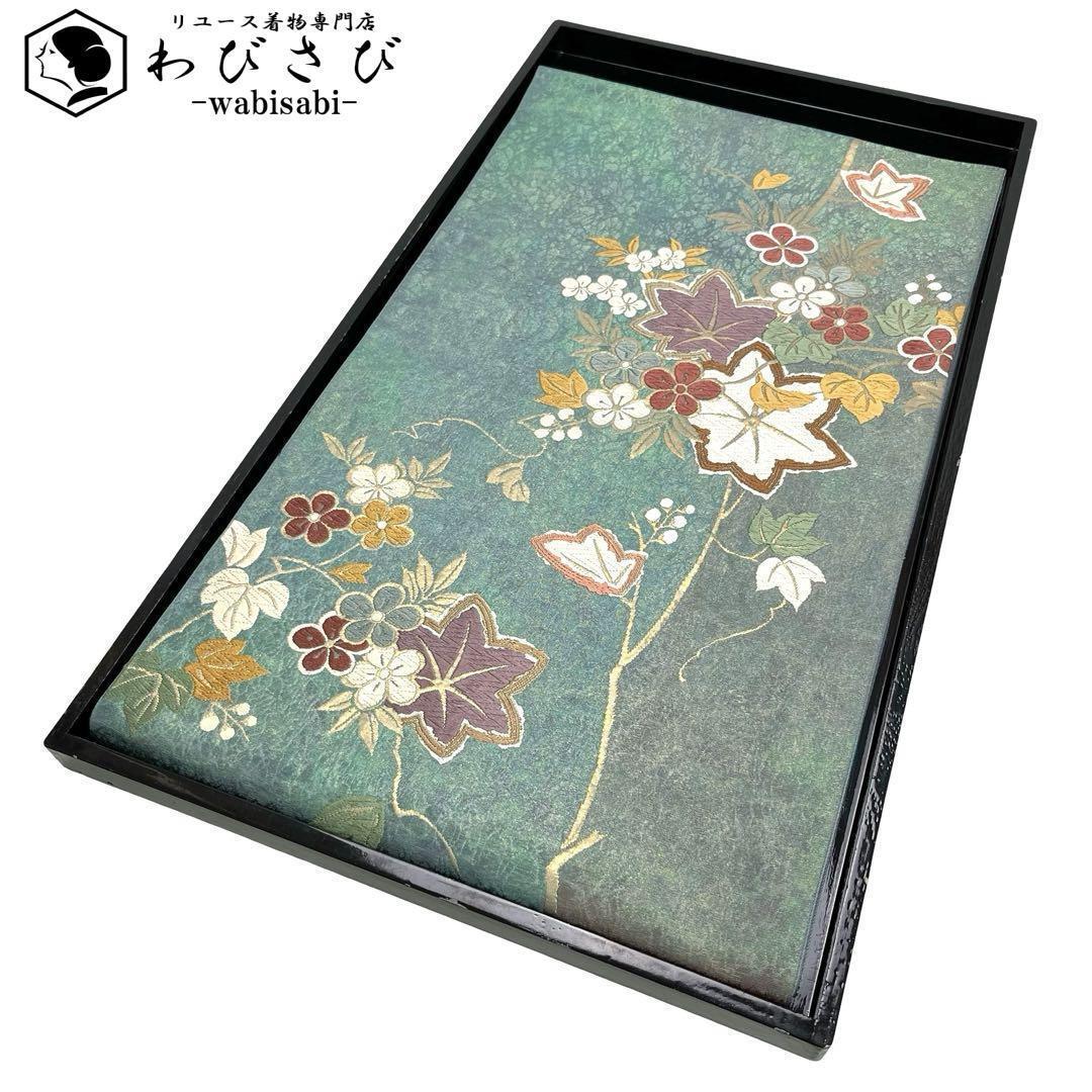 - 袋帯 草花模様 唐織 金糸 深藍色 O-4490 着物 きもの kimono 和服 和装 中古 リサイクル着物 【送料無料】