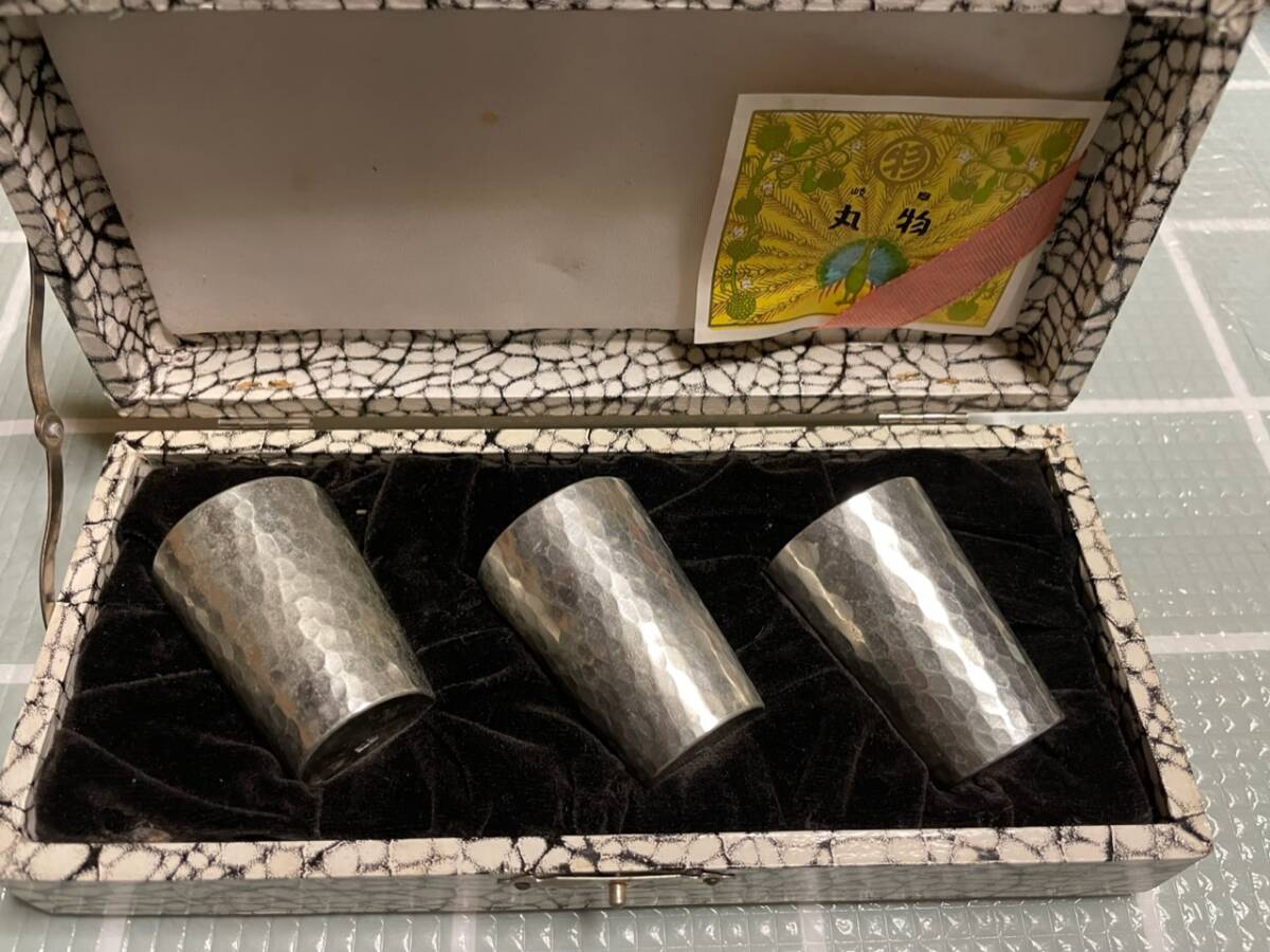 - 錫製品 ショットグラス お猪口 3個セット 昭和 レトロ アンティーク