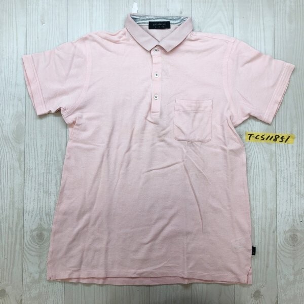 - 五大陸 gotairiku メンズ 胸ポケット付き ショートカラー 半袖ポロシャツ 36 ピンク