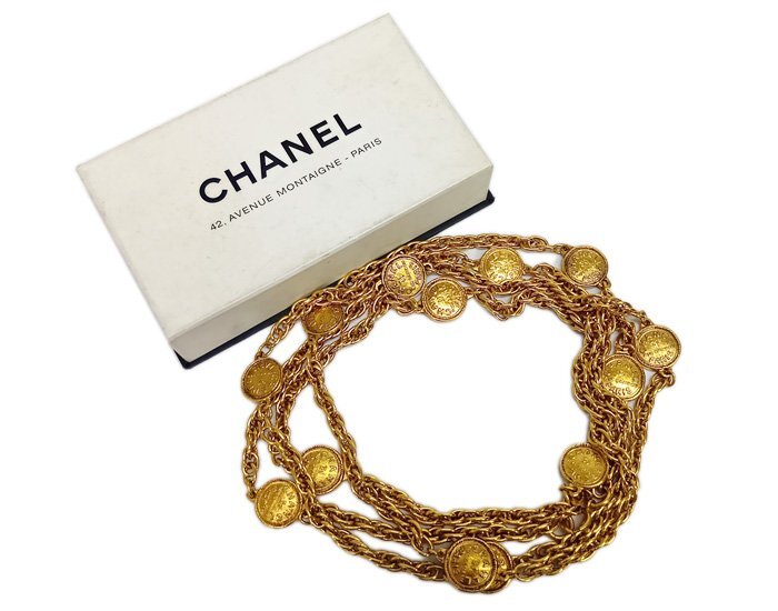 - CHANEL シャネル 31 RUE CAMBON リュ カンボン ロング ネックレス チェーン ベルト コインモチーフ13個 ゴールドカラー ヴィンテージ 箱有