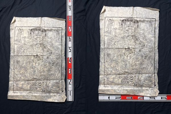 > 現状品 年代不明 曼荼羅 六道輪廻 ネパール?チベット? 仏教 仏画 仏教美術 密教 古玩 摺物 木版画 古書 レトロ アンティーク まくり めくり