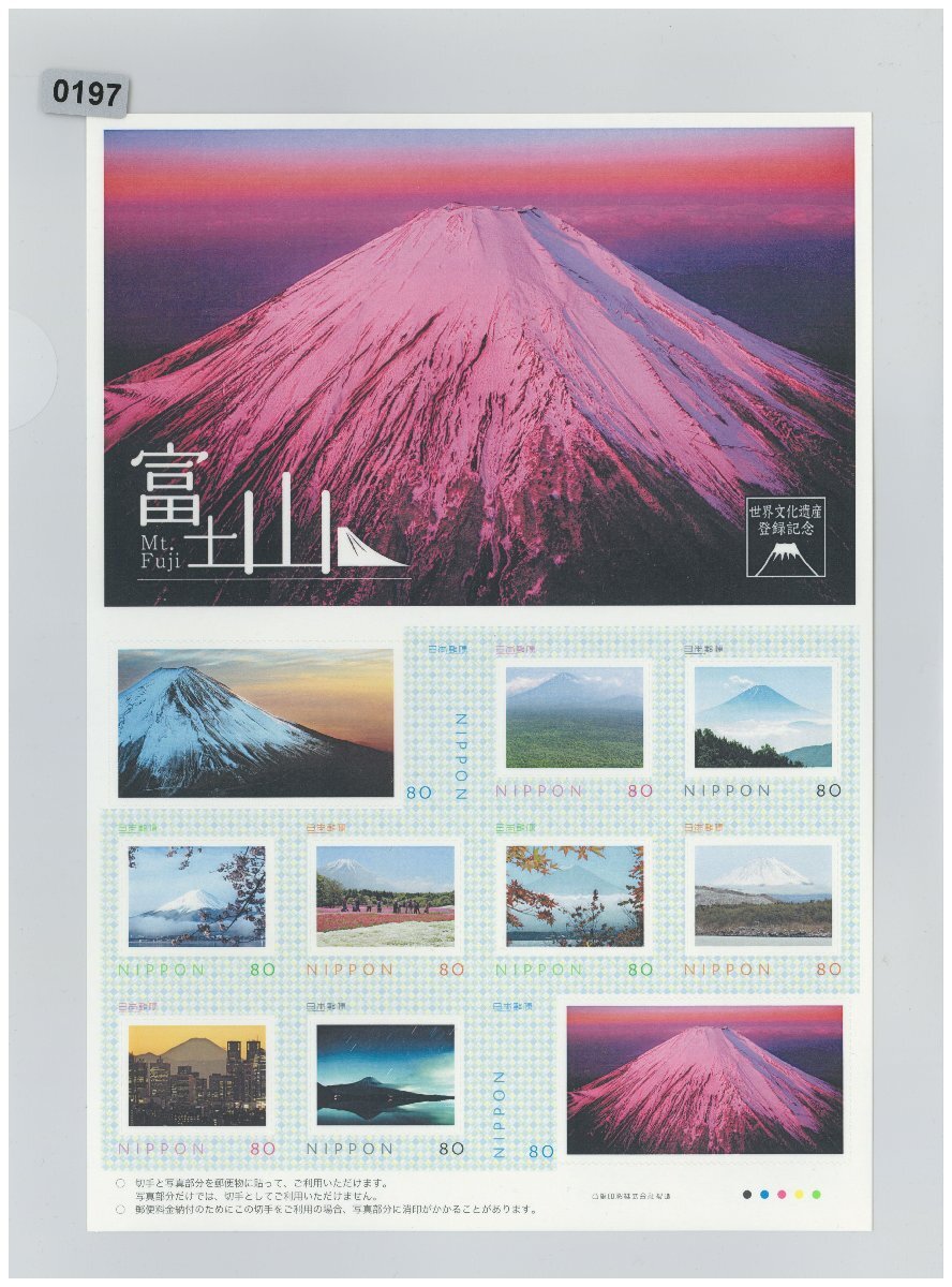 ●0197 フレーム切手 富士山 世界文化遺産登録記念 80円×10枚 シール・プレミアム記念切手 〒3