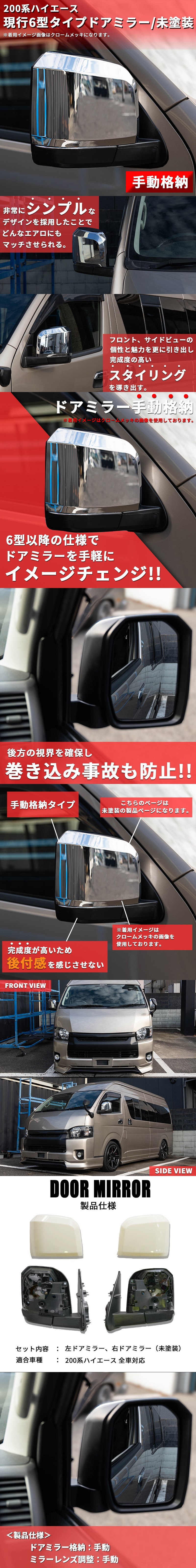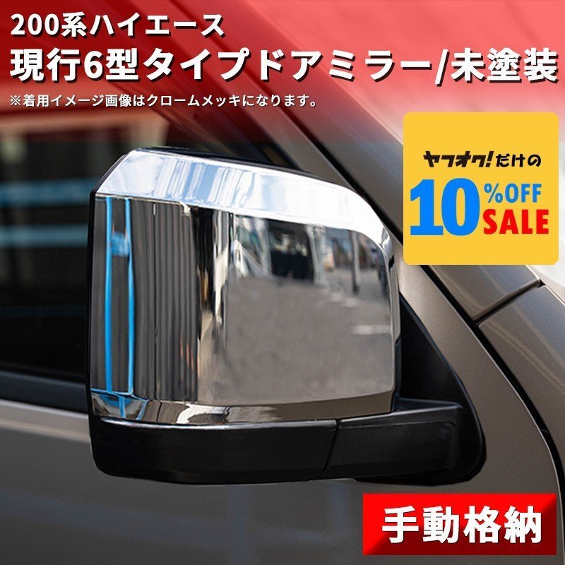 > ハイエース200系 6型タイプ ドアミラー 未塗装(手動)(S-GL DX ワゴンGL 1型 2型 3型 4型 5型 6型 7型)
