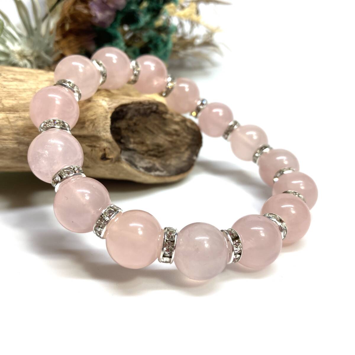 > ローズクォーツ パワーストーン ブレスレット 12mm 天然石ブレス (シルバー) 数珠ブレス メンズ・レディース 男性 女性 幸運 開運 浄化