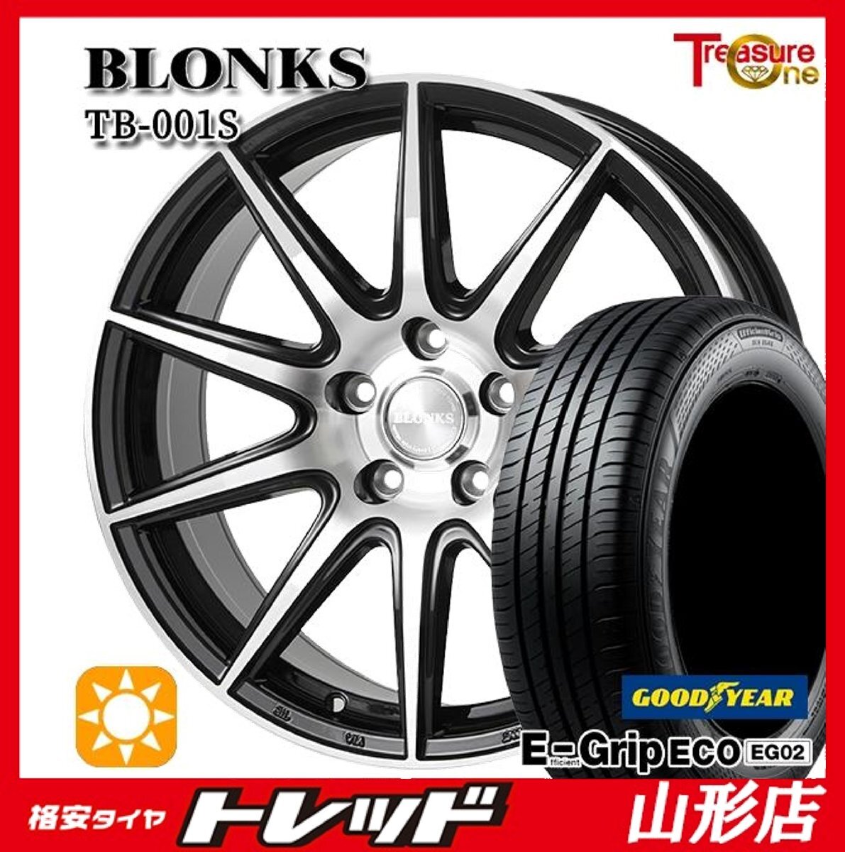 > 山形店 新品 夏タイヤホイール4本セット ブロンクスTB-001S 15インチ 6.0j 5H114.3 +53 BP グッドイヤー EG02 185/65R15 2025年製 フリード