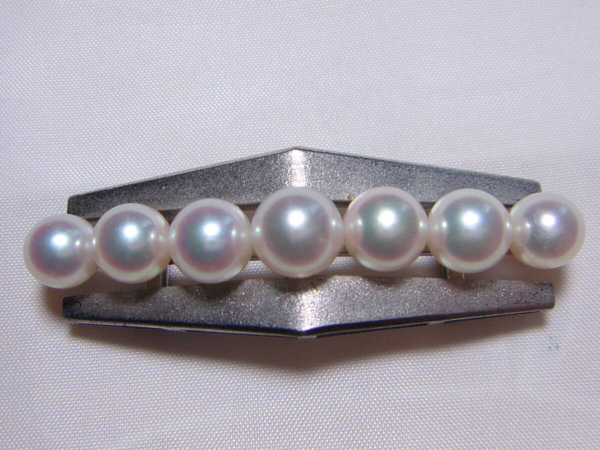 - 帯留め アコヤ真珠 本真珠 花珠 大玉! 約7~8㎜玉 SILVER刻印 レトロ アンティーク ヴィンテージ Y794